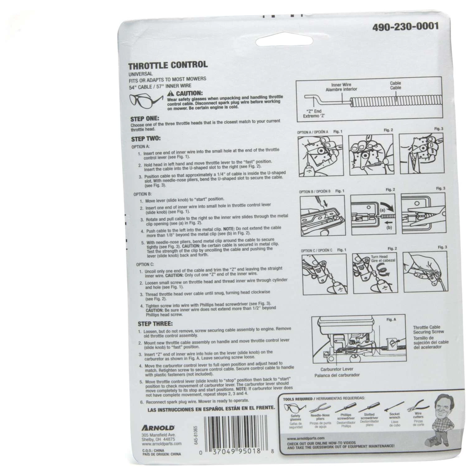 Minimize equipment downtime with this Arnold Throttle Control Kit. The kit includes a variety of controls to meet any of your needs. 54″ cable, 57″ inner wire, Fits or adapts to most walk-behind mowers. Easy to install Contains three handles Long lasting