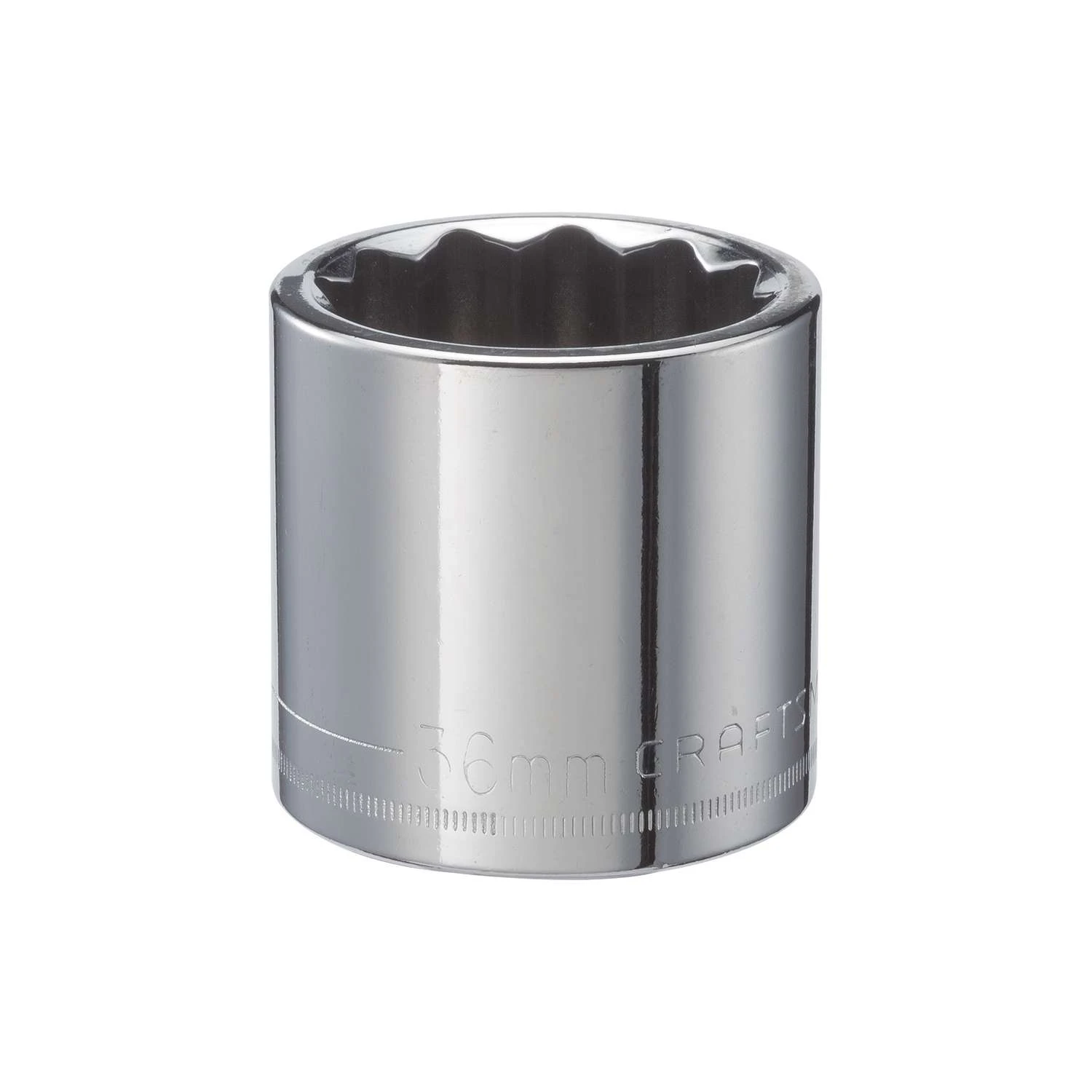 Your toolbox isn’t complete without the 1/2-in. Drive 36mm 12 Point shallow Socket. This Socket comes with large size markings and a rust resistant coating. CORROSION RESISTANCE: Full Polish Chrome Finish QUICK ENGAGEMENT: 12 Point Box End with fastener QUICK SIZE IDENTIFICATION: Large Markings Meets or Exceeds ASME Specifications