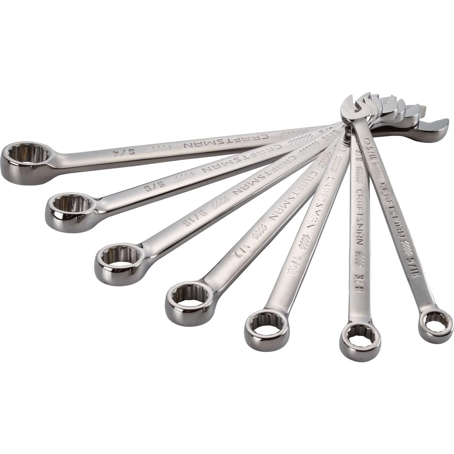 The Craftsman 7 pc. SAE Long Panel Gunmetal Chrome Combination Wrench Set offers a number of applications from standard bolt turning to specific automotive repairs. Gunmetal chrome finish for superior rust resistance 12 point box end with fastener for quick engagement 15 deg. box end offset for additional knuckle clearance Large markings for quick size identification 7X gripping power Common applications include automotive, mechanical and home repair Meets or exceeds ASME specifications Long panel for added leverage
