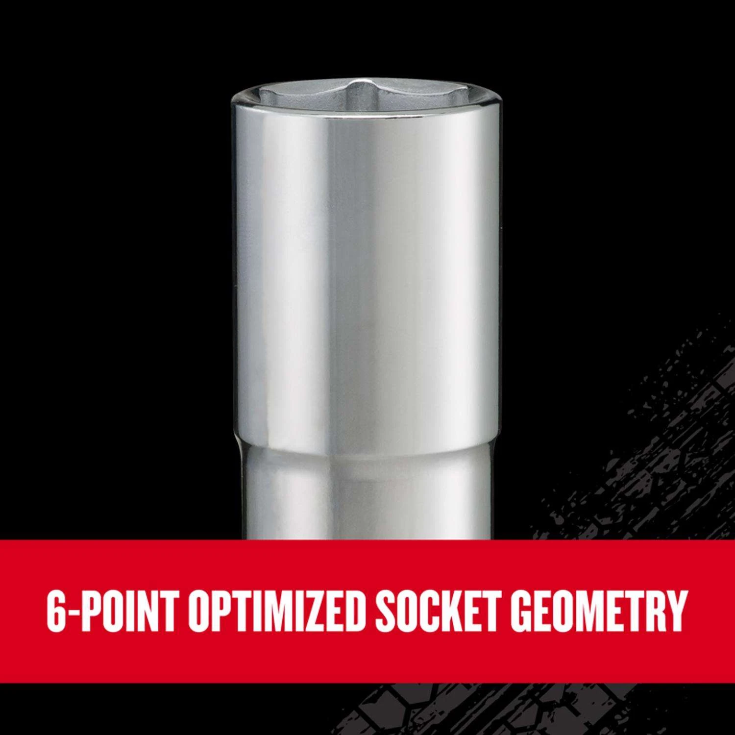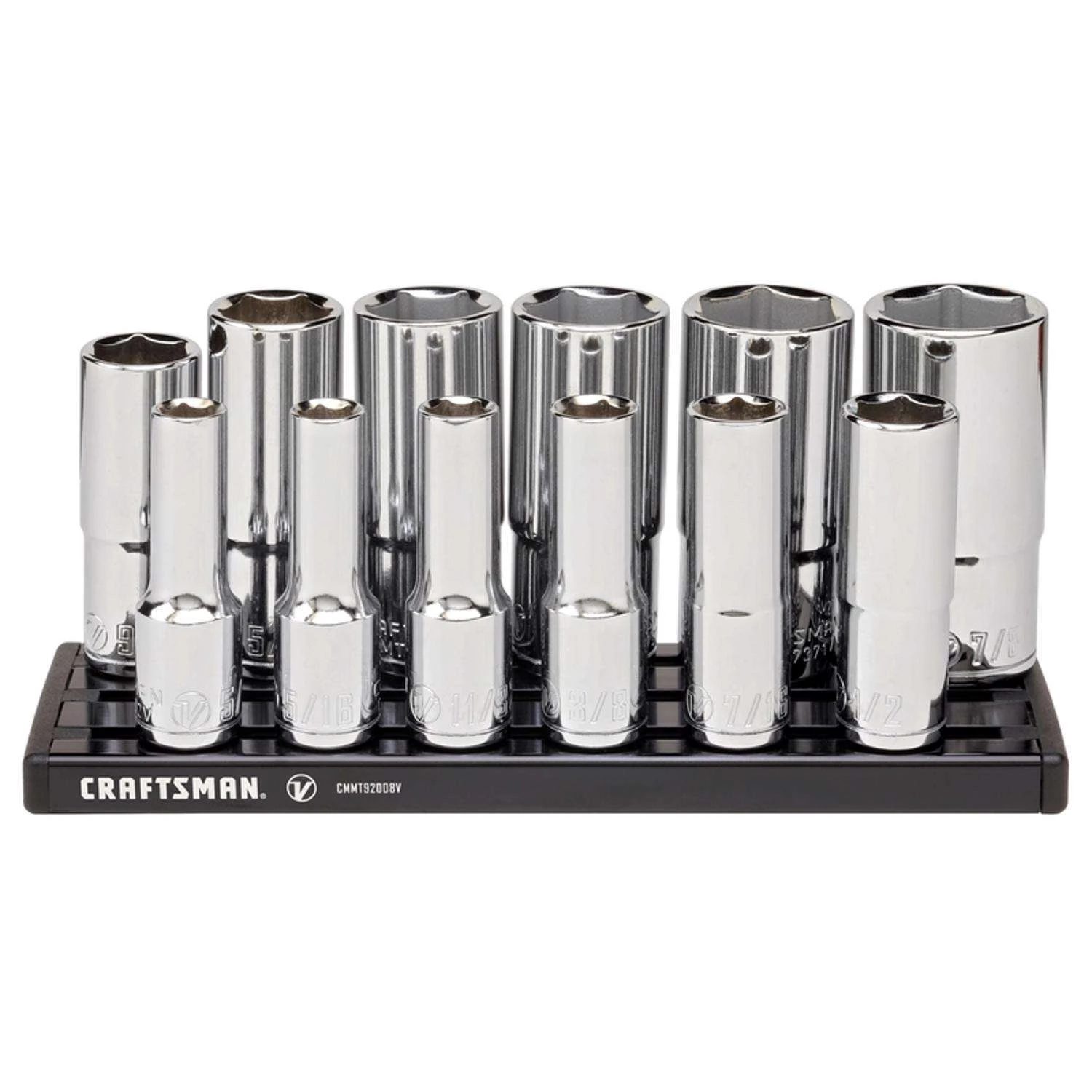 | What's Included | (12) 3/8 in. Drive 6 Point Deep Sockets – 1/4 in., 5/16 in., 11/32 in., 3/8 in., 7/16 in., 1/2 in., 9/16 in., 5/8 in., 11/16 in., 3/4 in., 13/16 in. and 7/8 in., and a 6 in. Black Rail with 12 Nubs |