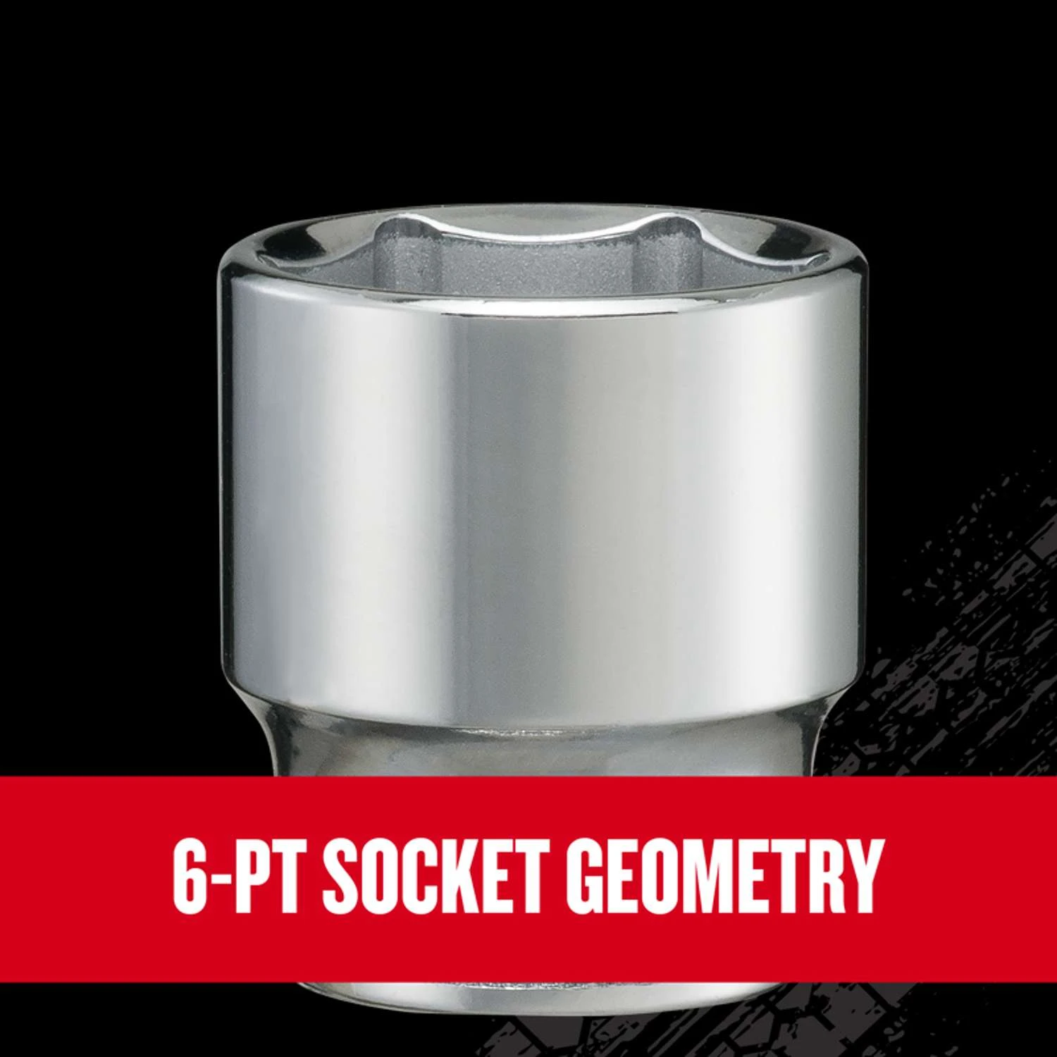 | What's Included | (1) 3/8 in. Drive Bi-Material Ratchet, (14) 3/8 in. Drive 6 Point Shallow Sockets – 1/4 in., 5/16 in., 11/32 in., 3/8 in., 7/16 in., 1/2 in., 9/16 in., 5/8 in., 11/16 in., 3/4 in., 13/16 in., 7/8 in., 15/16 in., 1 in., (1) 3/8 in. Drive Universal Joint, ( |