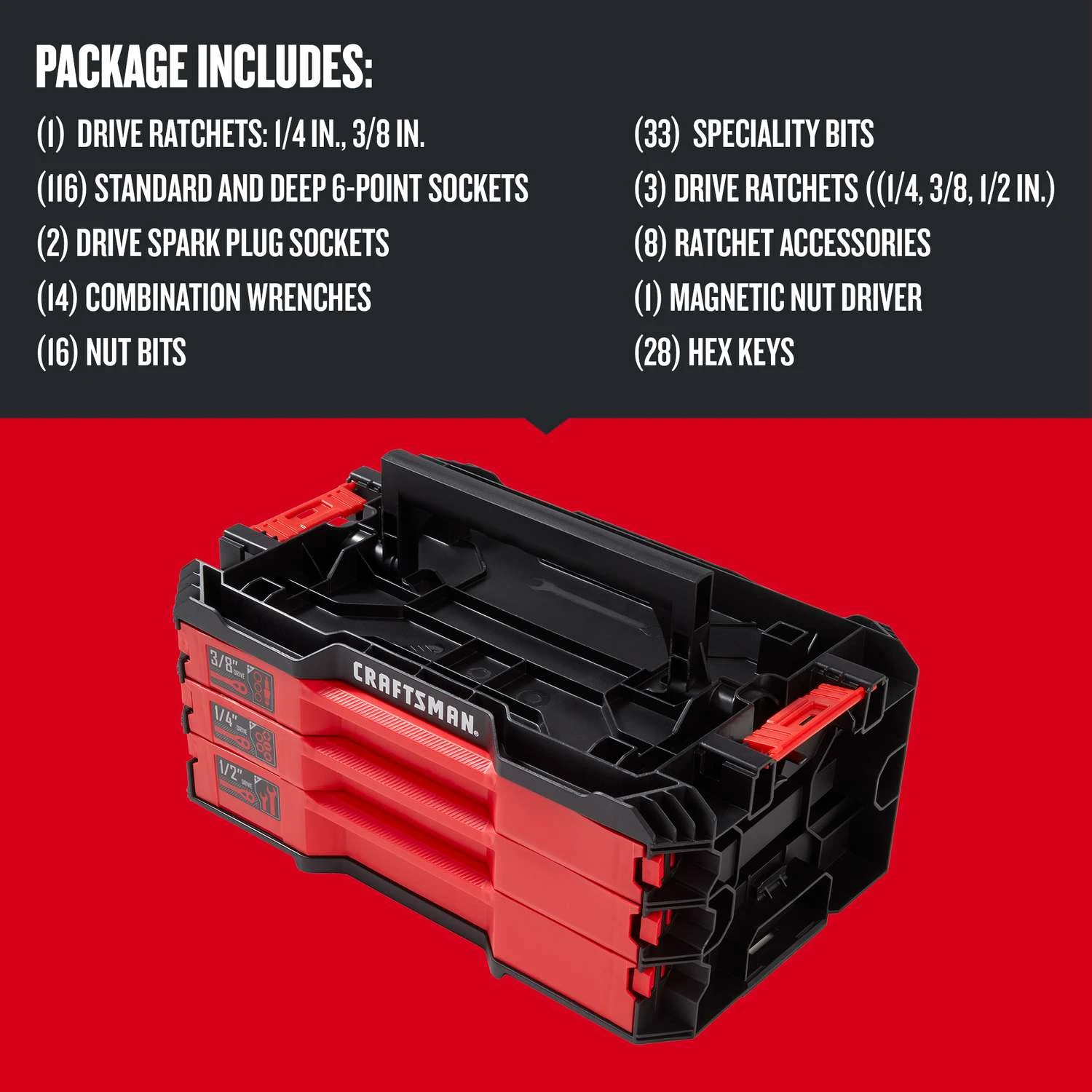 Craftsman VersaStack 1/4, 3/8 And 1/2 In. Drive Metric And SAE 6 Point Mechanic’s Tool Set 216 Pc