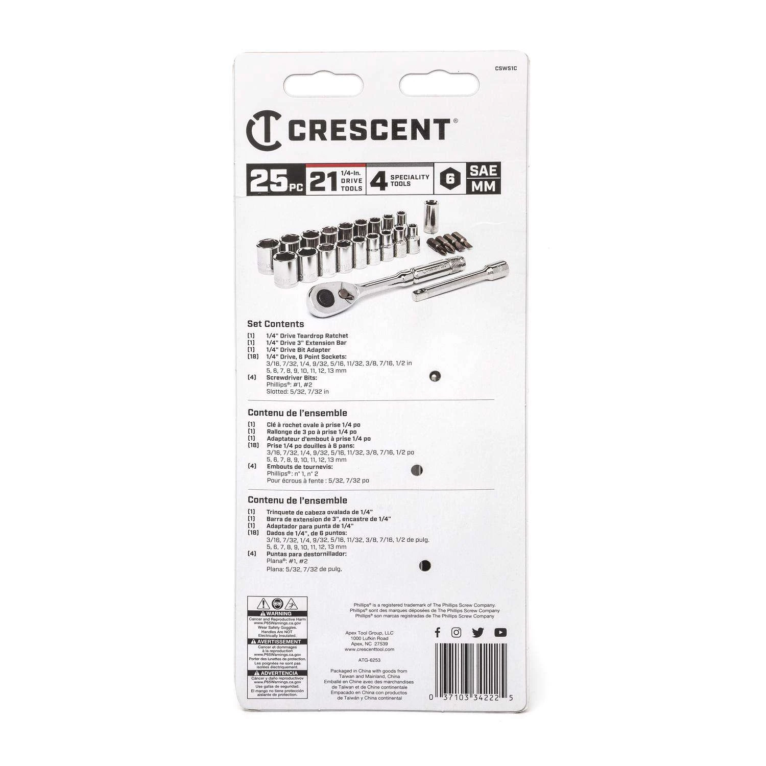 Crescent 1/4 In. X 1/4 In. Drive Metric And SAE 6 Point Socket Wrench Set 25 Pc