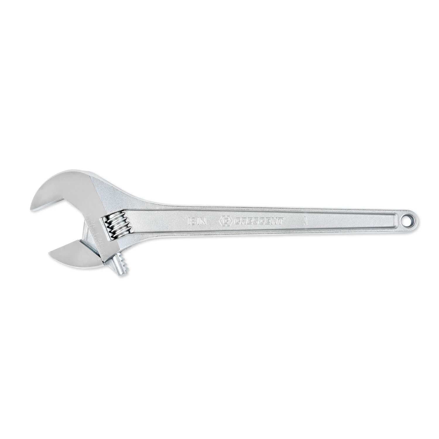 24 inch adjustable tapered handle adjustable wrench with wider knurl for easier adjustment. Laser etched scale provides a quick and convenient way to determine fastener size in either SAE or metric. Tension spring stabilizes jaw and knurl adjusts easily. Alloy steel and heat treated. Proportioned Dimensions for Greatest Strength and Minimum Weight Chrome Plated Finish Resists Rust and Corrosion Tapered, Satin Finished Handle for Better Two-Hand Grip and Less Weight
