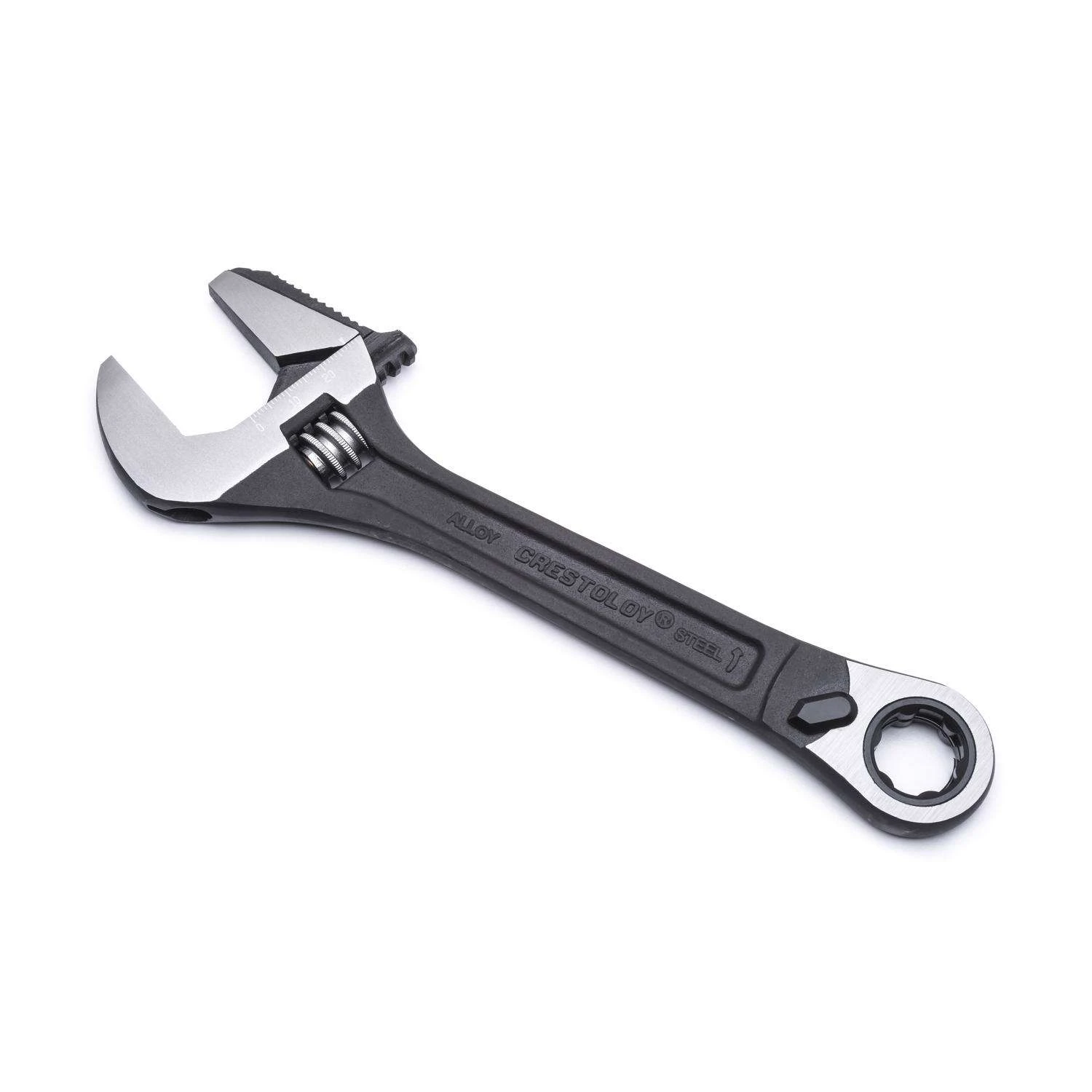The Crescent pass thru adjustable wrench Set is 3 tools in 1. It can be used as a standard adjustable wrench that has Maximum 1-1/8 inch. Jaw capacity or the jaw on the wrench head can be easily removed and reversed turning it into an adjustable pipe wrench with up to a 1 inch capacity. On the opposite end, the traditional hang hole has been transformed into a ratcheting pass thru ratchet head that can be used with the included SAE or metric universal sockets. Corrosion resistant black-phosphate finish Versatile fastening tool offers user multiple fastening options in a single tool design Pass-thru reversible ratcheting system works over long threaded rod where normal ratchets and sockets won’t fit Every pass-thru socket replaces one standard and one deep Sockets are clearly marked for easy identification For pipe work, the jaw reverses. Simply back the jaw out, turn it around and re-insert Universal design fits 6 fastener types (hex, square, 12pt, E-torx, partially rounded hex, spline) Traditional 8 in. adjustable wrench with laser etched SAE/MM Packaged in a convenient storage tray (included) Includes 10 universal combo sockets that fit both standard and metric fasteners: 3/8 in. (10mm), 7/16 in. (11mm), 15/32 in. (12mm), 1/2 in. (13mm), 9/16 in. (14mm), 19/32 in. (15mm), 5/8 in. (16mm), 11/16 in. (17mm), 23/32 in. (18mm), 3/4 in. (19mm)