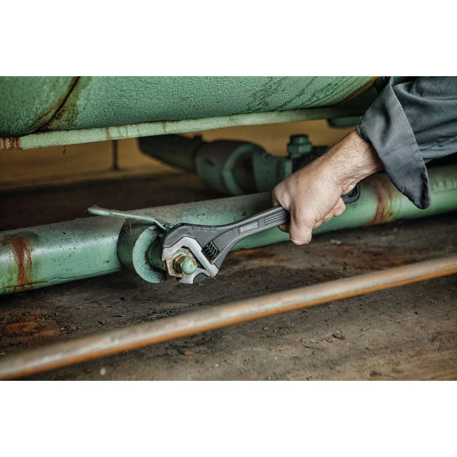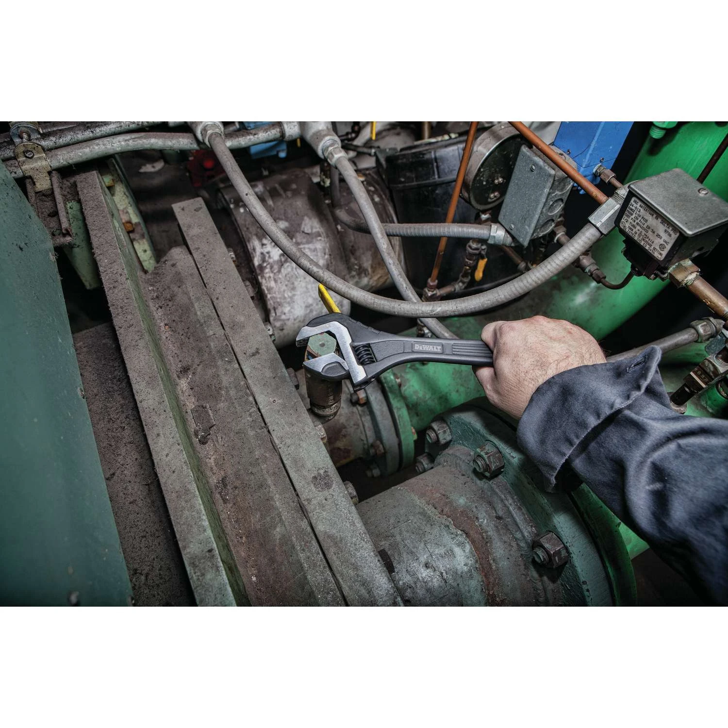 The 12inch adjustable wrench is extremely comfortable to use with its wide solid steel handle. The product’s jaw was engineered for minimal jaw movement for precise adjustments. It also features a tough coat finish which helps prevent chipping. Improved strength due to increased engagement on teeth and worm gear Jaw movement engineered to facilitate minimal jaw movement between moveable and fixed jaws for precise adjustments Tough coat finish helps to prevent chipping Wide solid steel handle for strength and comfort Extra wide jaw capacity Laser etched markings in SAE and metric for precise adjustment