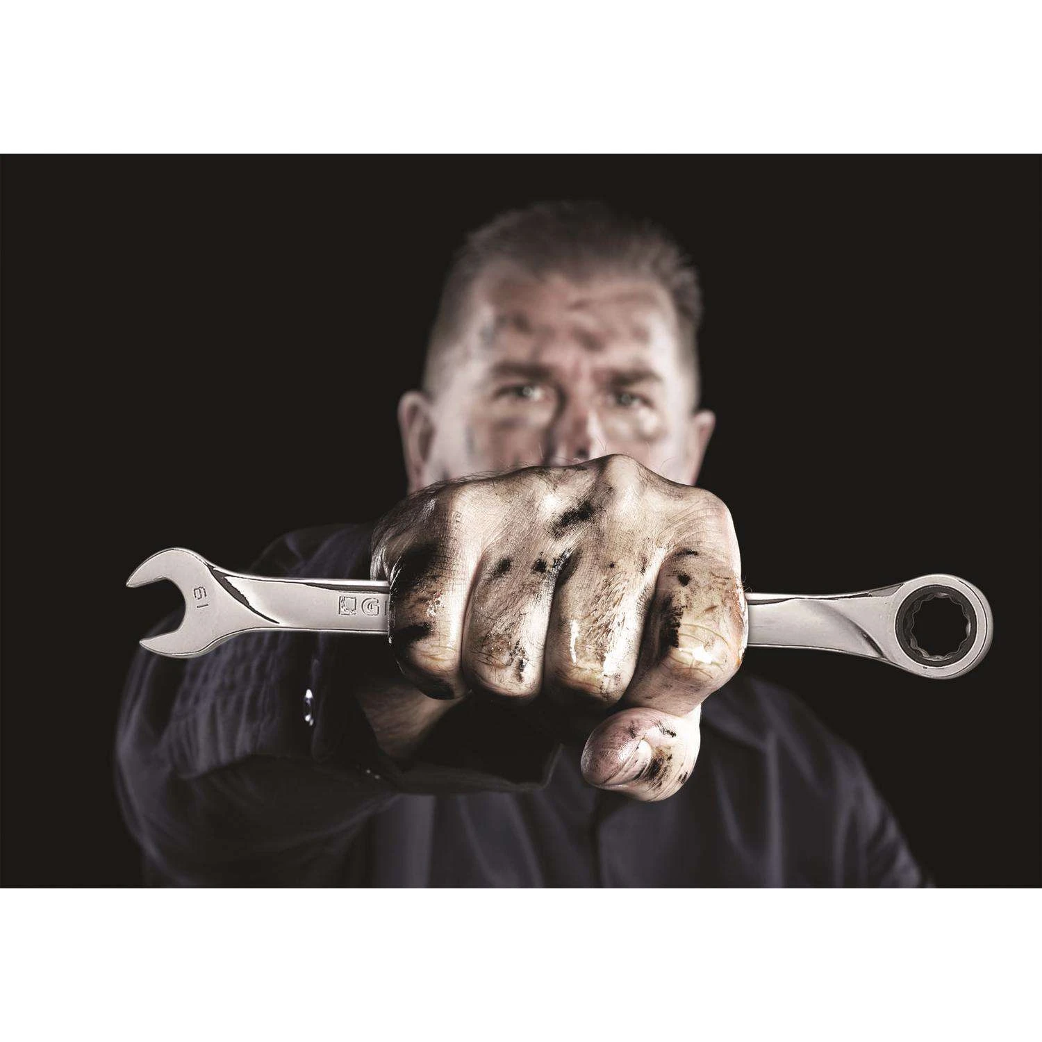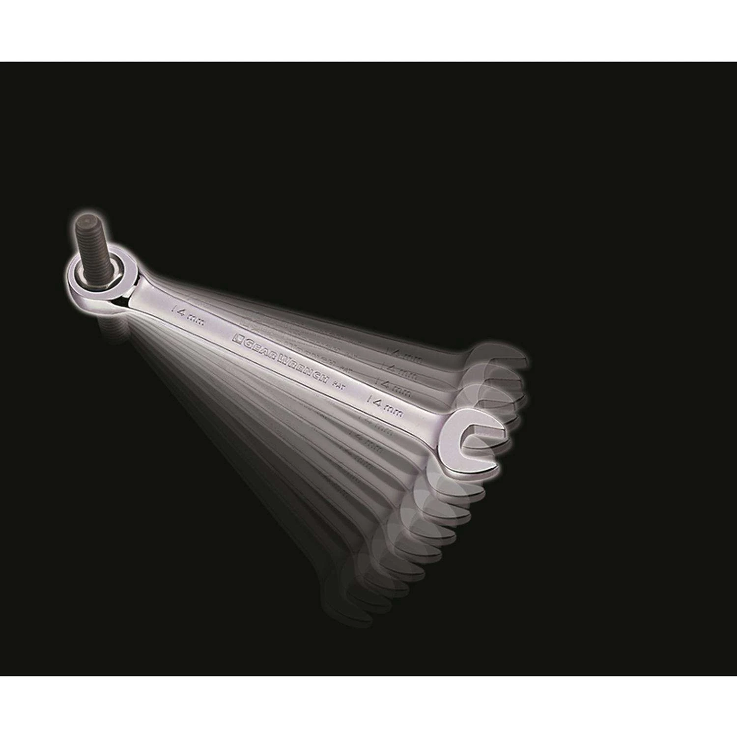GEARWRENCH Original ratcheting wrenches combine the speed of a ratchet with the access and control of a wrench. They offer the ease of 5 degrees of movement to turn fasteners, versus 30 degrees on standard combination wrenches. The small ratcheting box end head design enables access to tight spots where a ratchet won’t fit. The open end allows for easier access on tough to reach spots, making jobs go faster and easier. This set is a great addition to any mechanic tools collection. 72 tooth ratcheting box end needs a minimal 5 to move fasteners Off-corner loading design on box end provides better grip and reduces fastener rounding Thin head and beam provide greater access in confined work areas Size conveniently stamped on both ends of the beam for quick identification Manufactured from alloy steel for better strength and longer tool life Bright, full polish chrome finish easily wipes clean and resists corrosion Meets or exceeds ASME and ANSI specifications