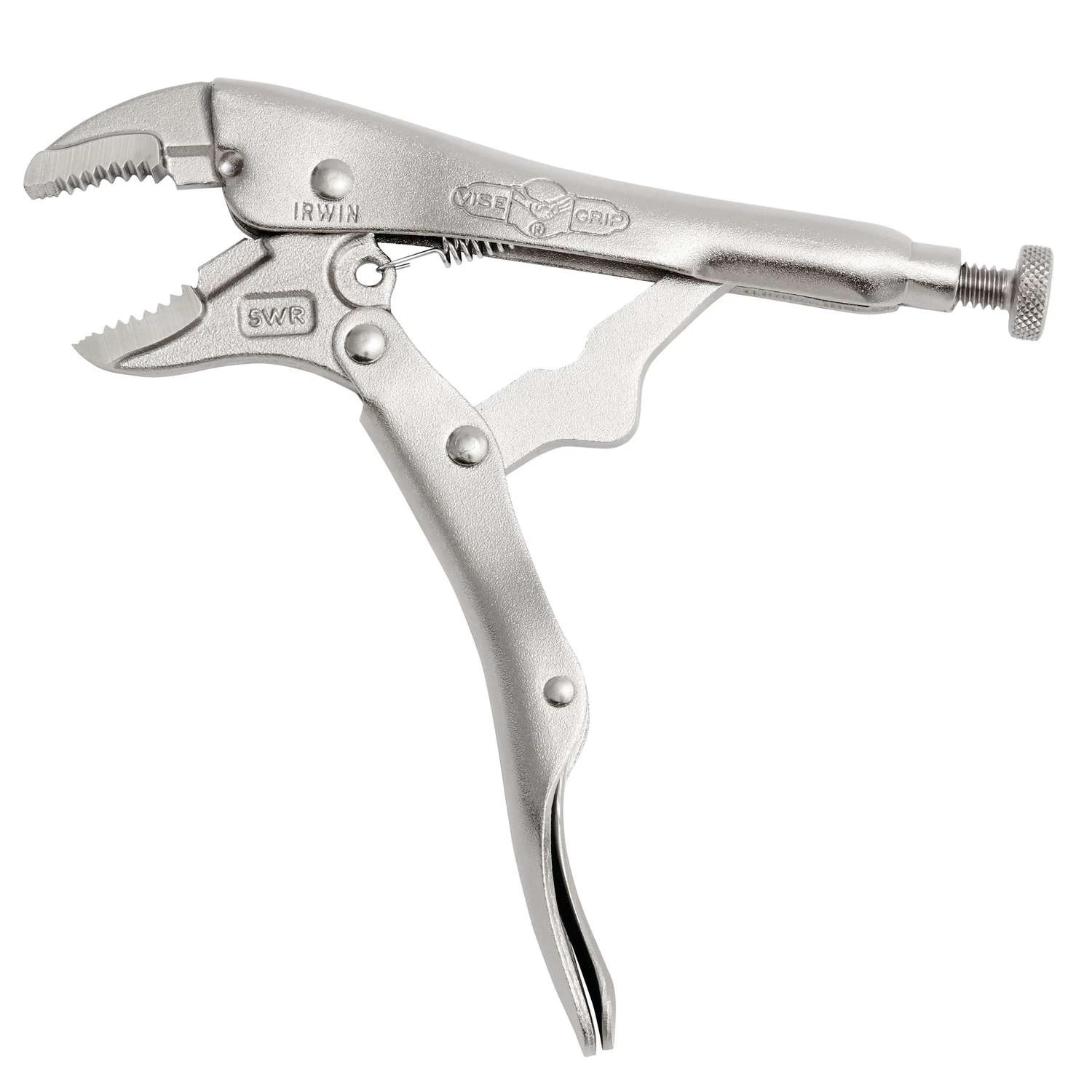 The IRWIN® VISE-GRIP® Original Curved Jaw Pliers with Wire Cutter are ideal for a wide variety of applications and material shapes with hardened teeth designed to grip from any angle. Constructed of high-grade, heat-treated alloy steel for maximum toughness and durability, these pliers have a hex key adjusting screw to vary pressure and draw materials together. Backed by the IRWIN Lifetime Guarantee. Curved jaw with built-in wire cutter great for a variety of applications and material shapes. Classic trigger release provides maximum locking force. Convenient wire cutter included Constructed of high-grade heat-treated alloy steel for maximum toughness and durability. Hardened teeth are designed to grip from any angle. Hex key adjusting screw tightens to adjust pressure and draw materials together and provides a controlled release. Backed by the IRWIN VISE-GRIP Lifetime Guarantee.