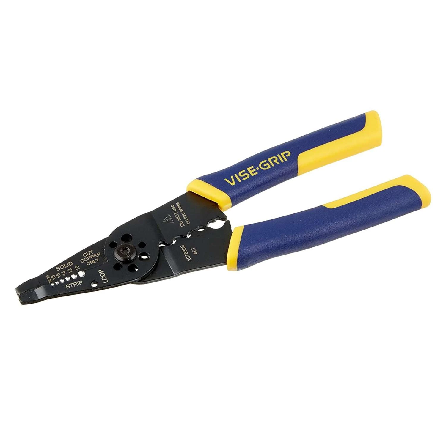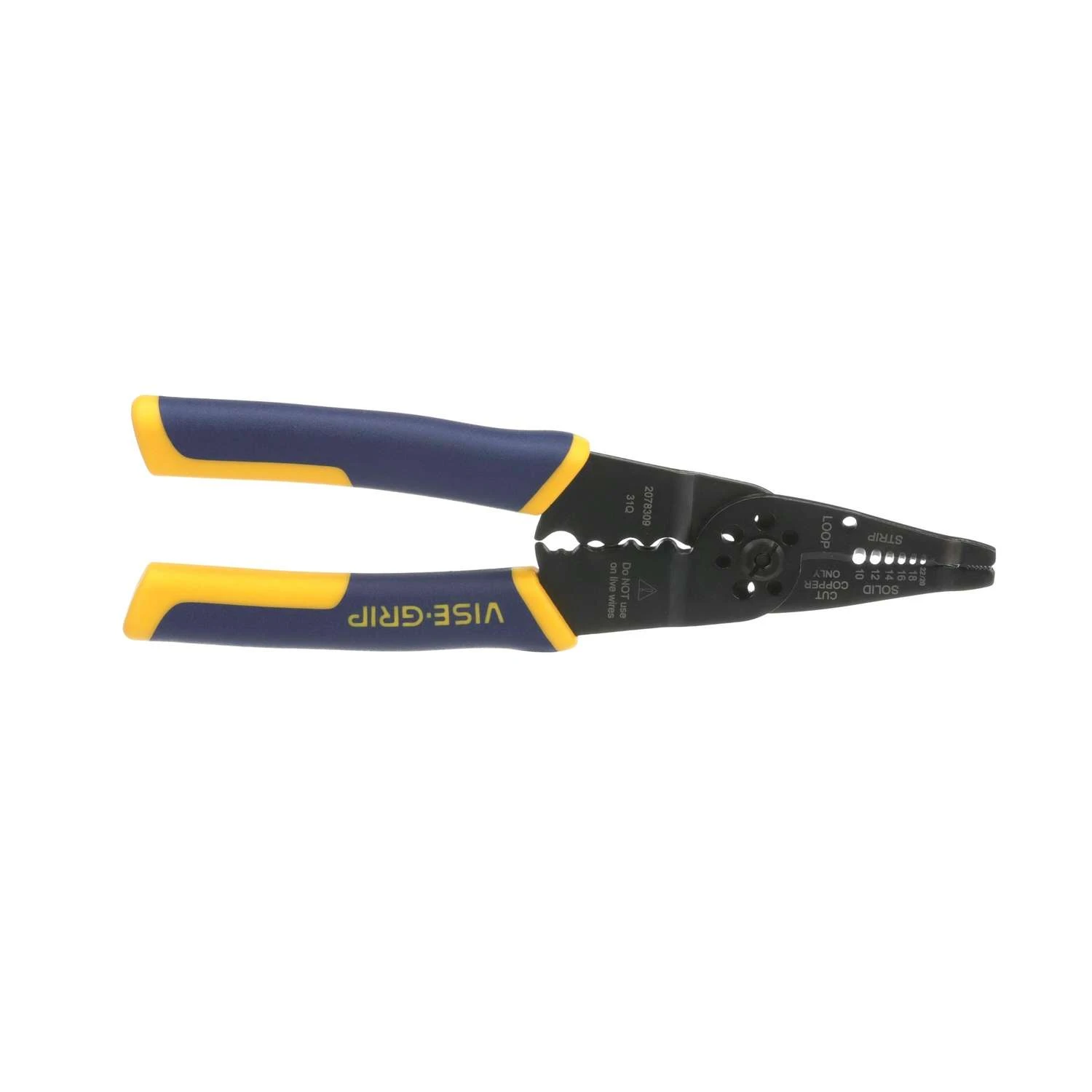 Get the job done right with IRWIN VISE-GRIP Wire Strippers. Featuring comfortable, textured-grip handles, and special features such as AWG selection dials, spring-assisted jaw openings, built-in crimpers, quick-release locks, and dual-metal construction (features depend on model), IRWIN VISE-GRIP Wire Strippers are the tools you need to get electrical and other wire-based work done faster, easier, and with less hand fatigue. Induction hardened cutting edge stays sharp longer Strips and cuts 10-22 AWG Pliers style nose allows pulling and looping in wire Bolt cutter cuts bolts to size and leaves perfect lead thread Wire crimper crimps insulated, non-insulated terminals ProTouch grips provide maximum comfort and reduced hand fatigue Meets or exceeds all ANSI standards