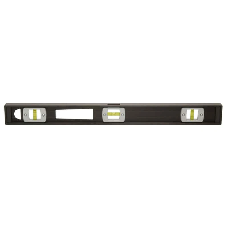 Johnson’s 3800 I-beam level was designed to be durable and easy to use – so much so that it has been the standard in the industry for over 30 years. Its heavy duty aluminum frame ensures accuracy and is durable enough to withstand even the roughest jobsite abuse and that frame is protected by shock absorbing end caps if the level is accidentally dropped. The level also comes equipped with replaceable, durable acrylic vials that are impact resistant along with a top read window allowing the user to stand over the work to view the vials. This level’s strong magnetic edge provides hands-free use on ferrous metal surfaces. Heavy duty aluminum frame assures durability and accuracy Durable easy-read acrylic vials are impact resistant Top-read window maximizes readability Replaceable cover plates and vials Shock absorbing end caps protect frame Strong holding magnetic edge allows hands free use on ferrous metal surfaces