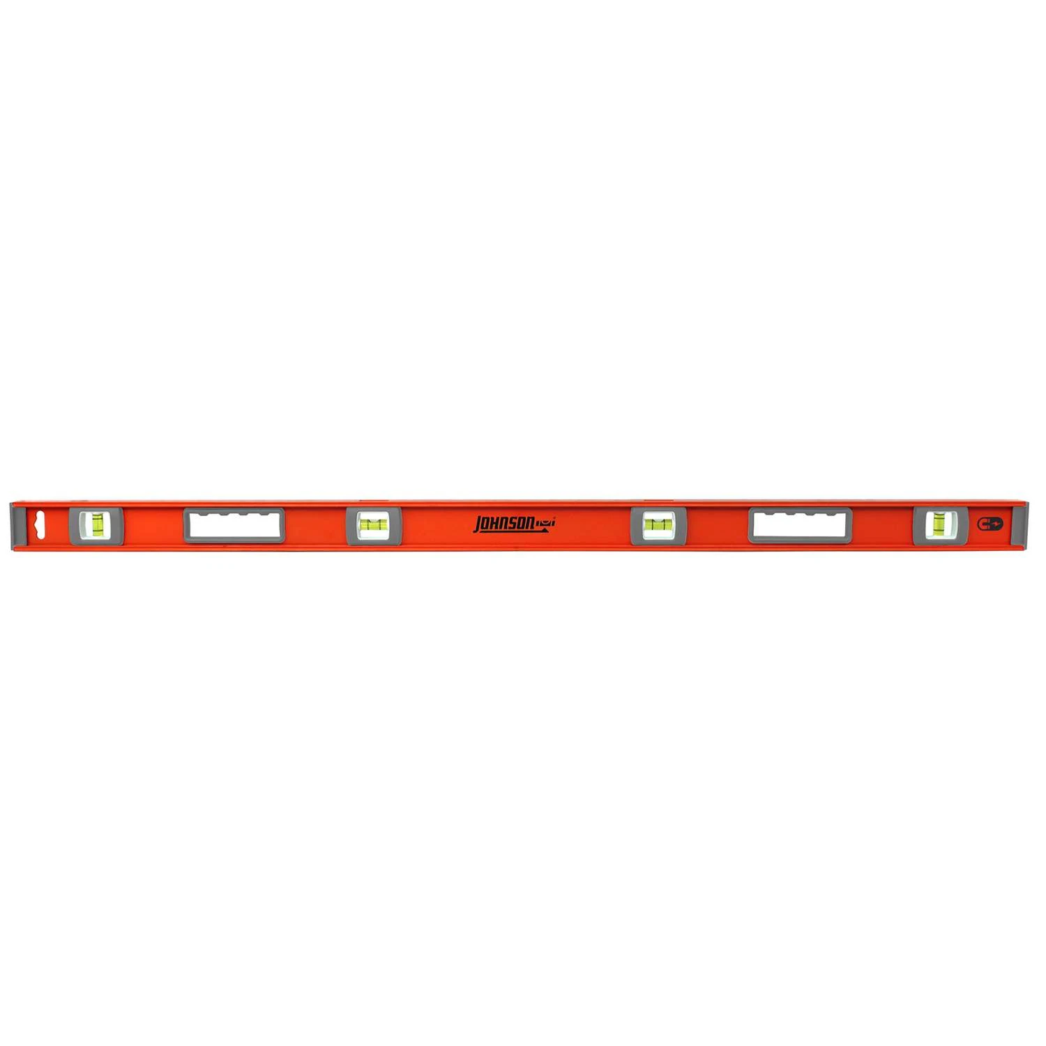 A level is only useful if you can read the vials. This level comes equipped with oversized 1/2″ field-replaceable vials. Not only are the vials themselves easy to read, but the level has more vials than competitive models in 48″ and longer lengths, meaning the vials are always within eyeshot, even at awkward angles. Finally, Johnson’s SurroundView® technology maximizes visibility and top read windows allow the user to stand over the work to view the vials. This level’s strong magnetic edge provides hands-free use on ferrous metal surfaces. Strong holding magnetic edge allows hands free use on ferrous metal surfaces Oversized 1/2 in. diameter vials are easy-read Ergonomic cushioned hand grips Top read window maximizes readability Shock absorbing end caps protect frame Field replaceable cover plates and vials
