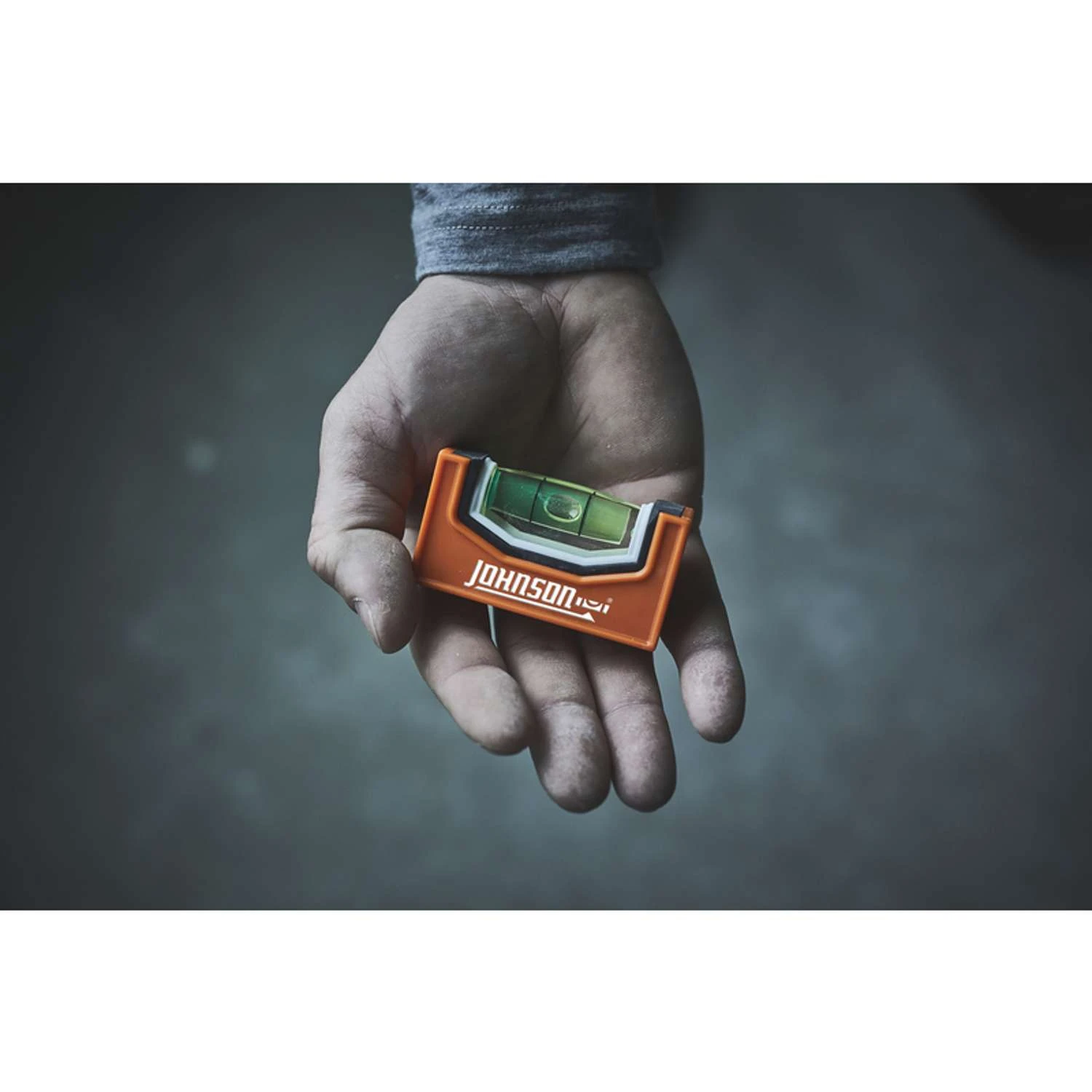 Check plumb or level accurately and conveniently even in tight spaces with Johnson Level’s 1721P Pocket Level. Its compact yet heavy-duty design makes it the perfect choice when you’re working in tight jobsite areas. It fits conveniently in your pocket, utility drawer or tool box and can be worn on your belt using the included belt holster, ensuring it’s on hand when you need it. The level’s solid curved block SurroundView® vial reflects ambient light in dim environments and is oversized for maximum readability. This level is also equipped with rare earth magnets that hold to flat or round ferrous metal surfaces for convenient, hands-free use. Solid curved block vial with 320 visibility Powerful encapsulated GripTight rare earth magnets secure level to ferrous metal surfaces Reads plumb on side edge Ideal for use in tight spaces Includes belt holster
