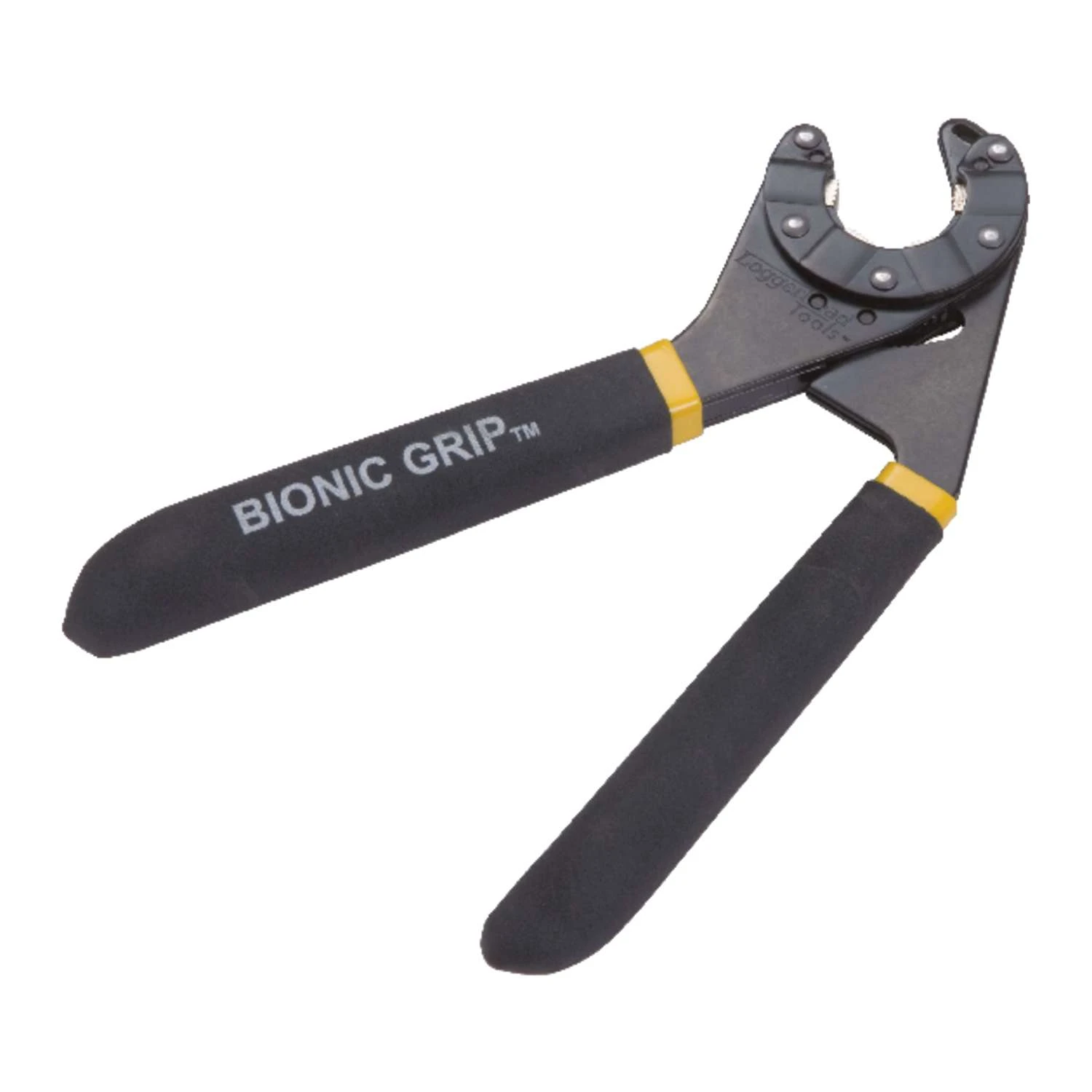 The Loggerhead Tools 8 inch Bionic Grip is an open-ended version of the patented, award-winning Bionic Wrench. This new hand tool brings together the best features of a pair of pliers and an adjustable wrench. Like the Bionic Wrench, the Loggerhead Tools 8 inch Bionic Grip distributes force around a work surface and automatically grips multiple sizes of nuts and bolts, with no prefitting needed. However, the Bionic Grip’s open-ended head can fit over work that is difficult or impossible to reach with a closed-headed wrench. The Loggerhead Tool has four serrated jaw surfaces and an interlock mechanism that stays locked while under torque load. Use this Loggerhead Bionic Wrench on household plumbing or for hydraulic and air line fittings that need to be replaced, added or taken off. No guessing bolt or pipe sizes Works as an adjustable wrench as well as an adjustable pipe wrench Features serrated jaws to easily grip pipes Grips the nut, bolt or pipe on 4 sides Cushioned, textured ergonomic handles for a non-slip grip