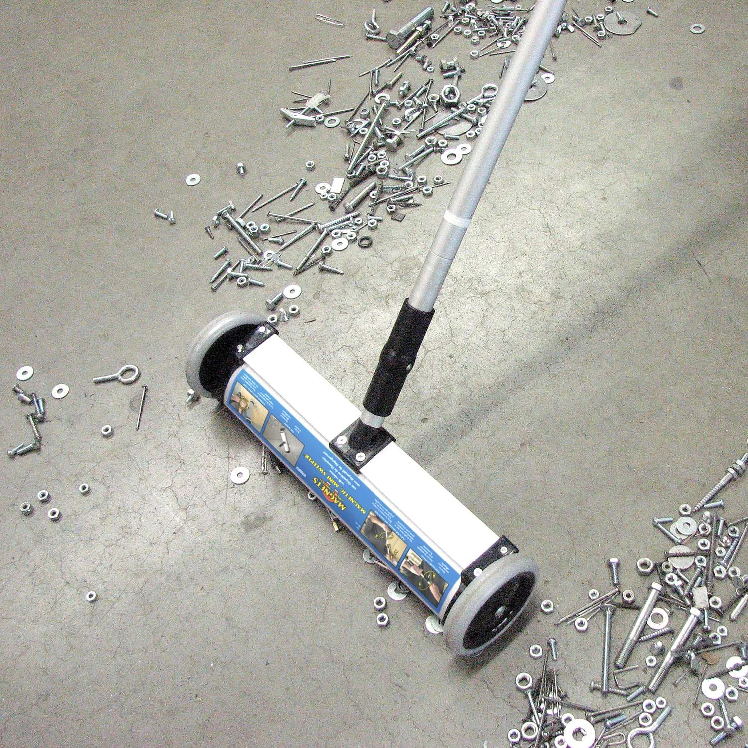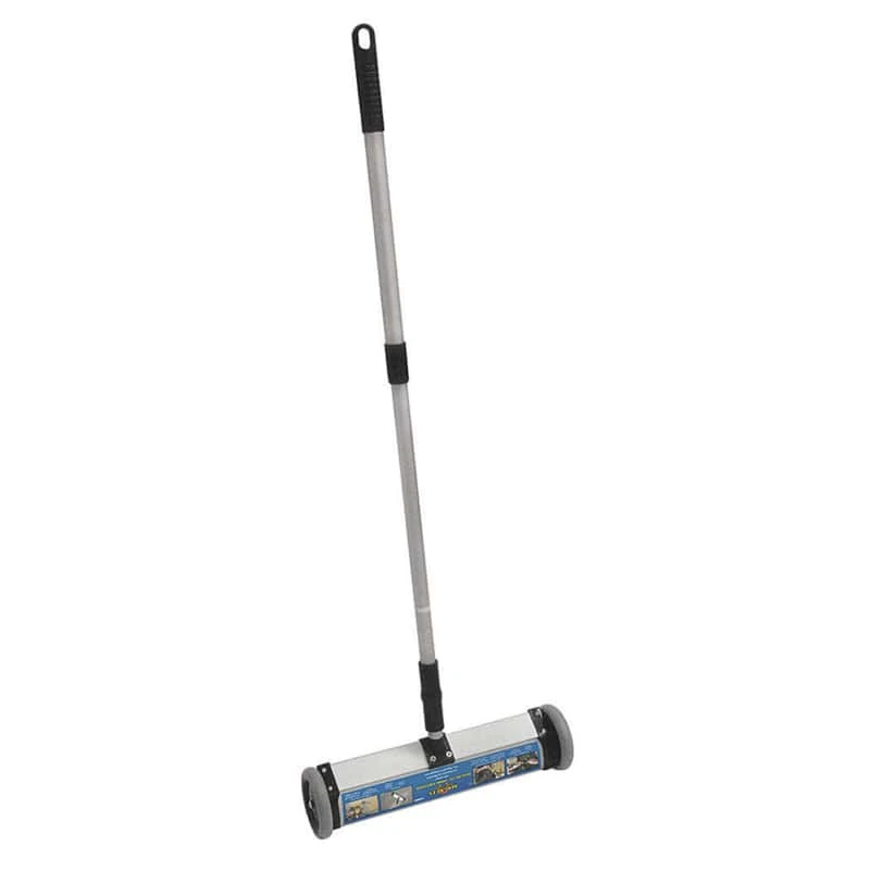 Save money and prevent injuries. Easy and fast way to collect large quantities of metal debris from floors, walkways and work areas, keeping them safe and clean. For home, shop, yard and garage use. Permanent magnetism guaranteed. More About Ceramic Magnets: Our hard ceramic ferrite magnets are composed of iron oxide and barium or strontium carbonate. Ceramic magnets exhibit relatively good holding strength for their price, making them a popular choice for many consumer, commercial and technical applications. Hundreds of uses sporting, household, industrial and commercial Push-type magnetic mini sweeper with release 13″ Sweeping Width Powerful and economic Lightweight, yet durable aluminum housing Clear collected debris with quick-release mechanism Retractable handle for easy storage and transportation Permanent magnetism guaranteed Great for clean up around home, shop, yard, office and garage Ideal for keeping work areas debris free